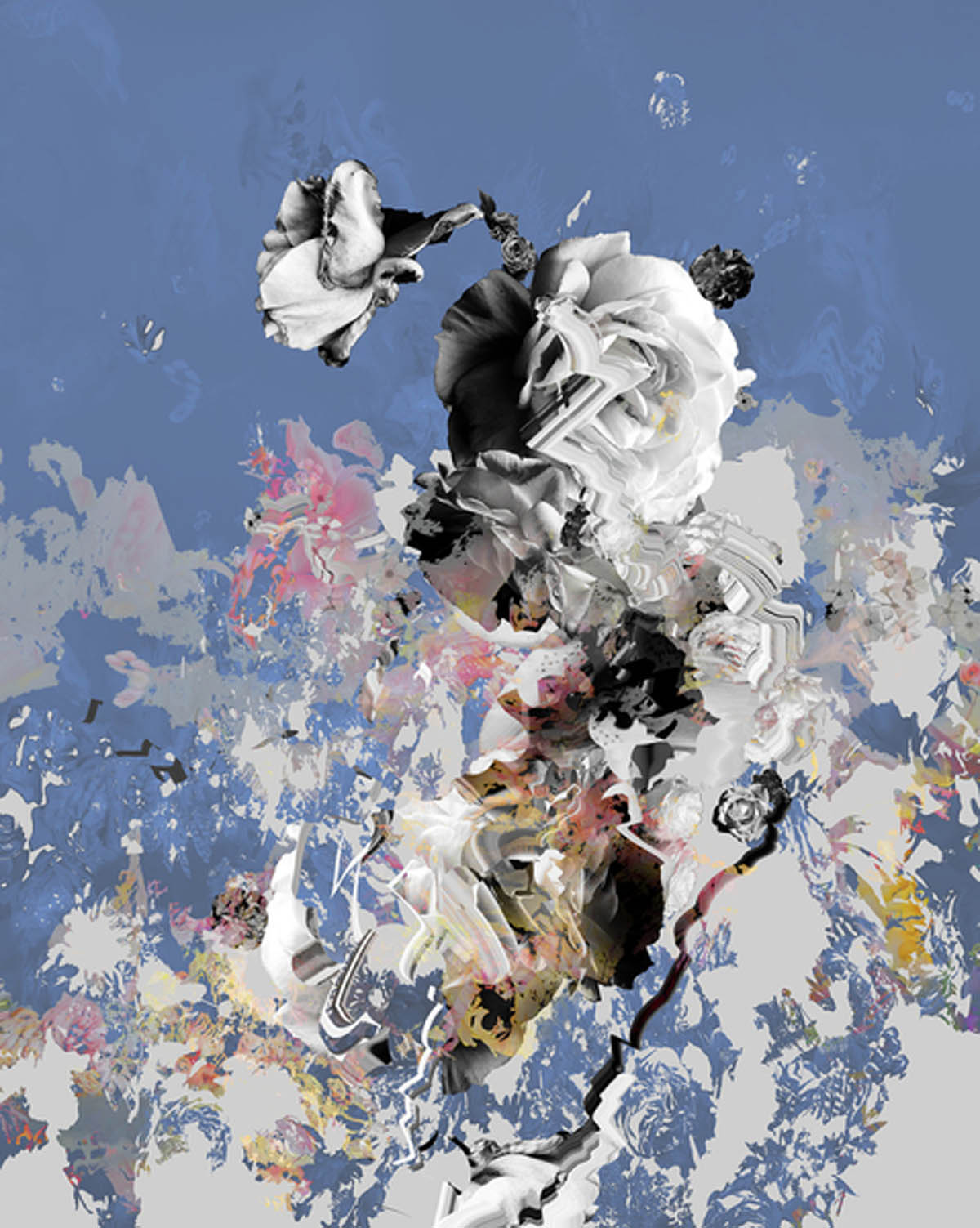 Aus ihrem unerschöpflichen Blumenrepertoire entwickelt die Künstlerin außergewöhnliche Fotocollagen, die Assoziationen an barocke Stilleben, die Verspieltheit des Rokokko und Pop Art Flowers wecken.